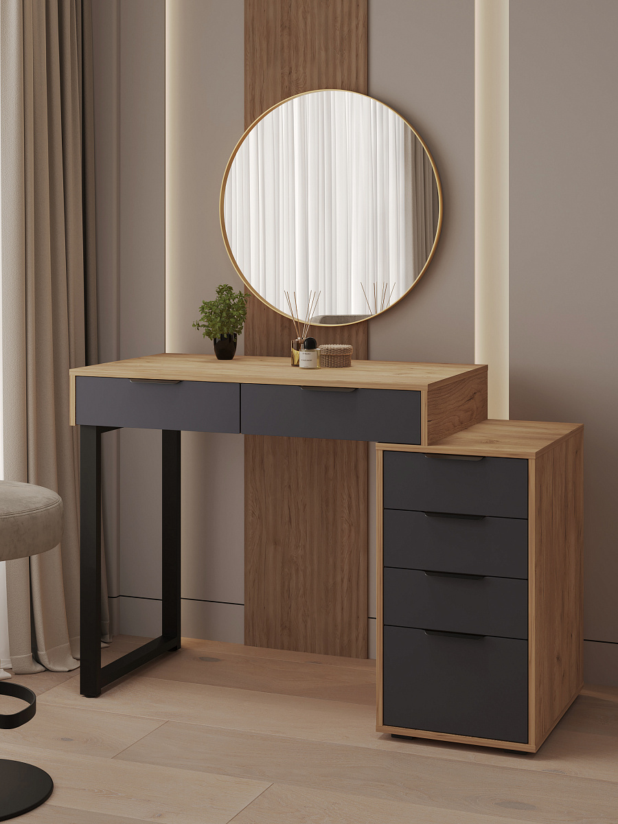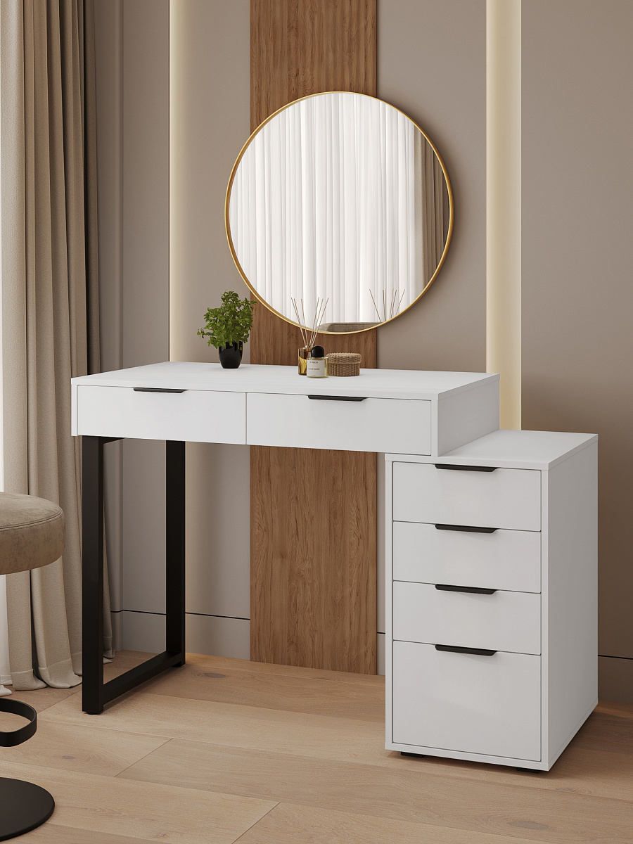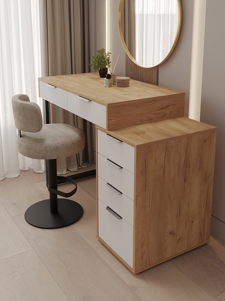 Туалетный столик в спальне становится личным beauty-уголком: здесь вы спокойно наносите макияж, ухаживаете за кожей и храните украшения. Это не мебель, а инструмент для комфорта, который экономит время и создает настроение.