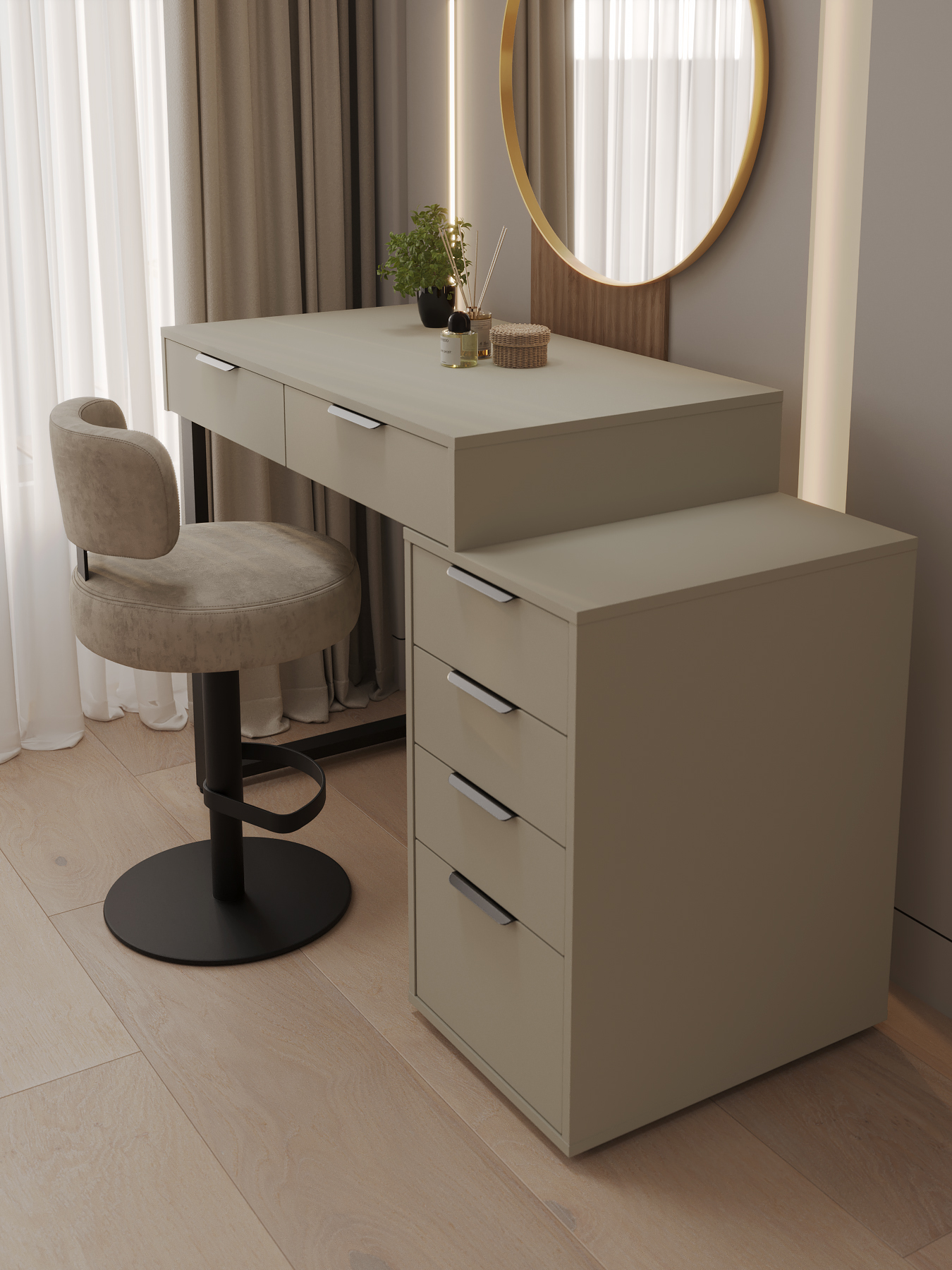 Представьте: вы садитесь за столик с мягким освещением, все баночки и кисти разложены на своих местах, большие ящики скрывают фен, бижутерию и средства для ухода. Вы не ищете потерявшуюся подводку, не заливаете водой тумбочку и не будите домочадцев шумом воды в ванной. Это островок спокойствия и порядка, который экономит вам минимум 20 минут времени каждое утро.