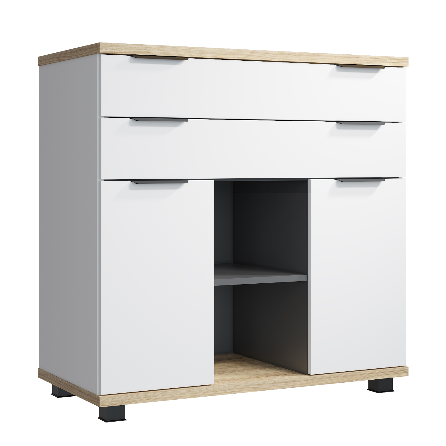 Комод СЛ-11К линейки Скайлайт выполнен в современном стиле и разработан специально для детской и подростковой комнаты. Корпус изготовлен из качественного ЛДСП толщиной 16 мм, столешница и основание комода ЛДСП 25 мм. Фасады выполнены из МДФ и покрыты качественной ПВХ пленкой. Комод имеет пять широких выдвижных ящика для хранения вещей или игрушек. Фурнитура: телескопические направляющие полного выдвижения без доводчиков, ручки металл. Внутренние размеры ящика ш806хг334хв110 мм, отсека ш395хг334хв110 мм. Высота опоры 50 мм. Опоры регулируемые.