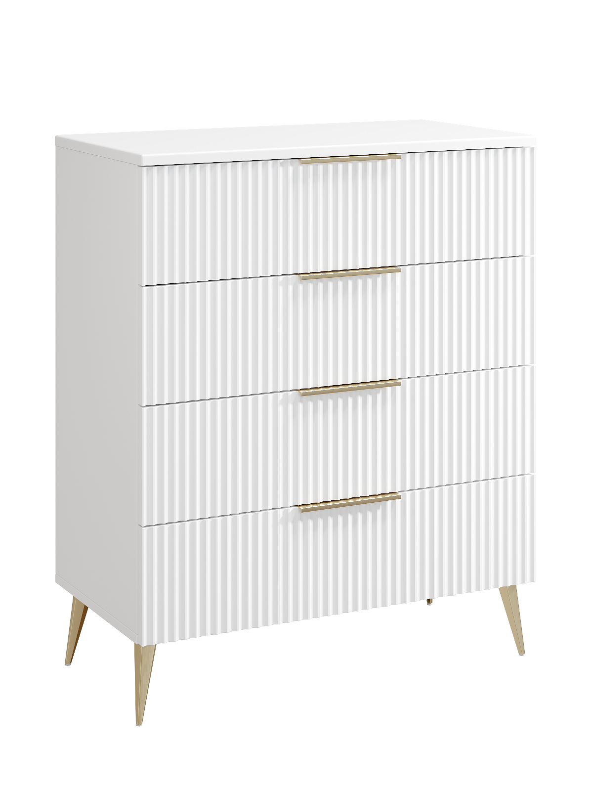 Размеры модуля (ш/в/г) в мм: 785х960х410 Цвет корпуса/фасада: белый бриллиант/бланж Материал корпуса/фасада: ЛДСП 16 мм, МДФ 19 мм  Комод Афина АФ-01 – идеальное решение для современной спальни, гостиной или прихожей. Благодаря продуманной конструкции и качественным материалам он сочетает в себе практичность и эстетику. Комод подойдет для неоклассического и современного интерьера. Особенности комода Афина АФ-01: Стильный дизайн — рельефные фасады с фрезеровкой "волна" в нежном оттенке белый бриллиант/бланж Просторная столешница из МДФ 19 мм Четыре выдвижных ящика