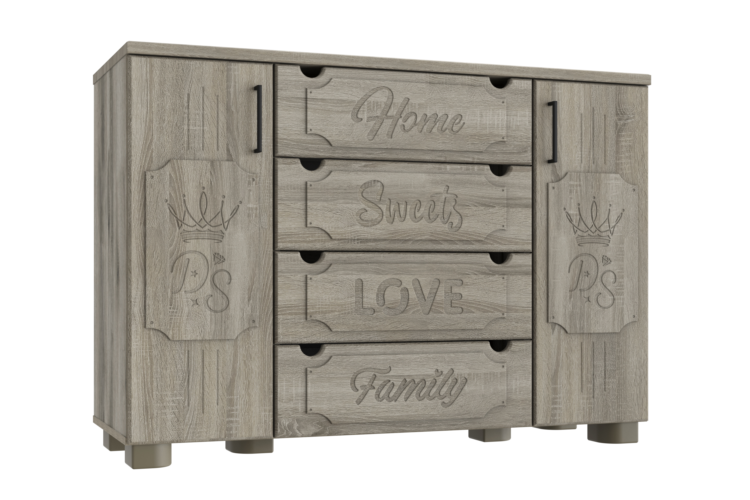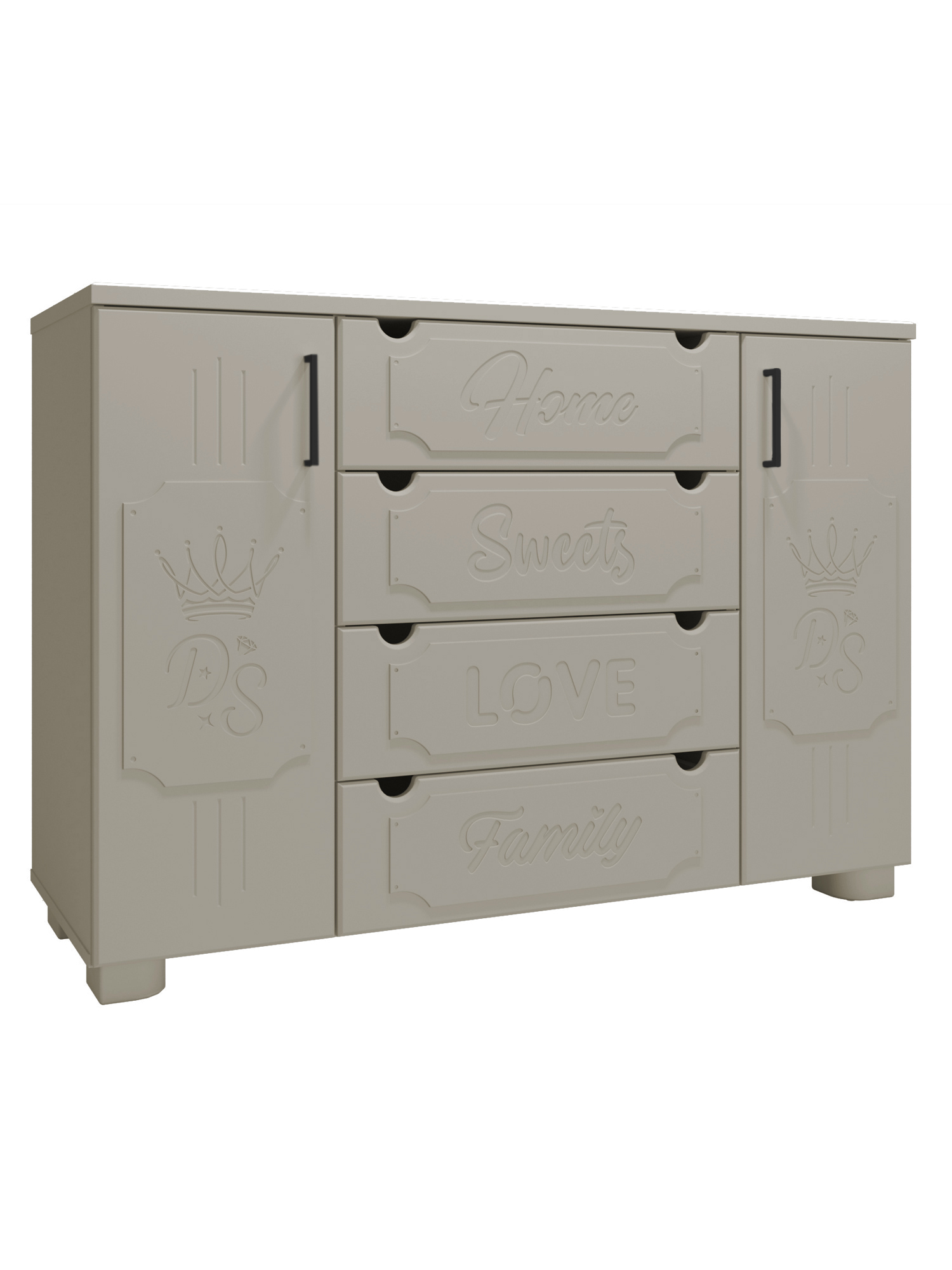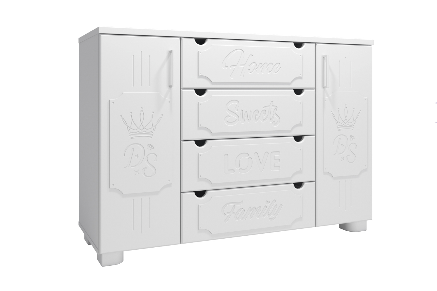 Комод ДримСтар ДС-13 несомненно станет украшением гостиной или спальни. Комод оборудован посередине четырьмя вместительными выдвижными ящиками для белья и постельных аксессуаров. По бокам находятся тумбы с дверцами, за которыми по две полки. Выдвижные ящики оснащены современными телескопическими направляющими полного выдвижения, обеспечивающие плавное и бесшумное выдвижение ящиков, а на дверцах установлены петли с доводчиками.