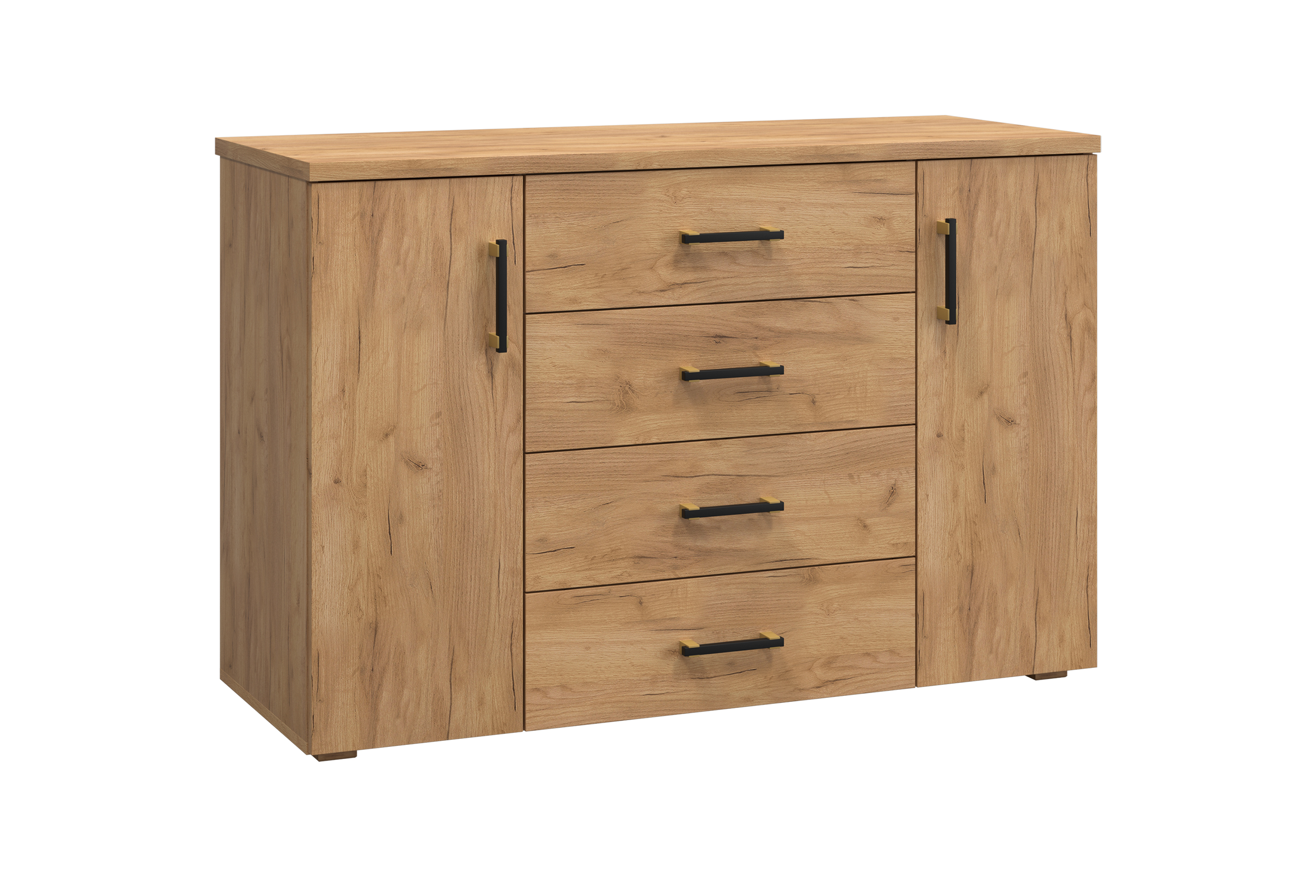 Линейка мебели "Виктория" - выгодное решение для отелей и гостиниц, сбалансированное по цене, качеству и функциональности. В производстве используется ЛДСП, толщины 25/16 мм. Фасады обработаны ударопрочной кромкой ПВХ толщиной 2/0,6 мм. В коллекции используется современная, качественная фурнитура. Базовая комплектация представлена в декоре Дуб крафт золотой и Северное дерево светлое. Комод оборудован посередине четырьмя вместительными выдвижными ящиками для белья и постельных аксессуаров. По бокам находятся тумбы с дверцами, за которыми по три полки. Выдвижные ящики оснащены современными телескопическими направляющими, обеспечивающие плавное и бесшумное выдвижение ящиков, а на дверцах установлены петли с доводчиками. Внутренние размеры ящика г384х ш522х в110 мм.