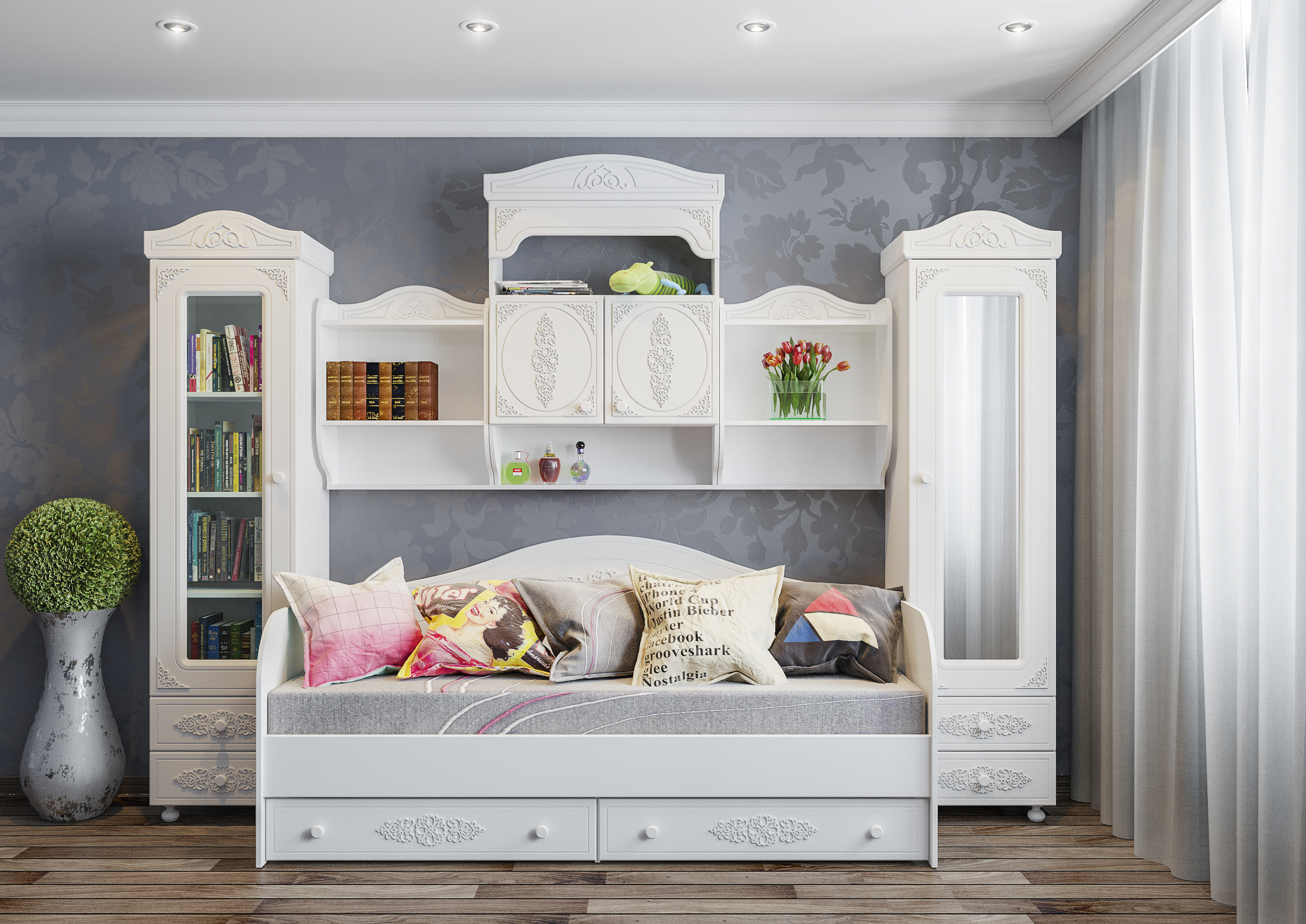 «Ассоль» выпускается только в одном цвете «белое дерево». Для нее характерен мягкий мерцающий глянец и эксклюзивный узор, повторяющийся на фасадах всех моделей. В линейку входит более 50 модулей, отлично сочетающихся друг с другом и позволяющих создавать индивидуальный интерьер.