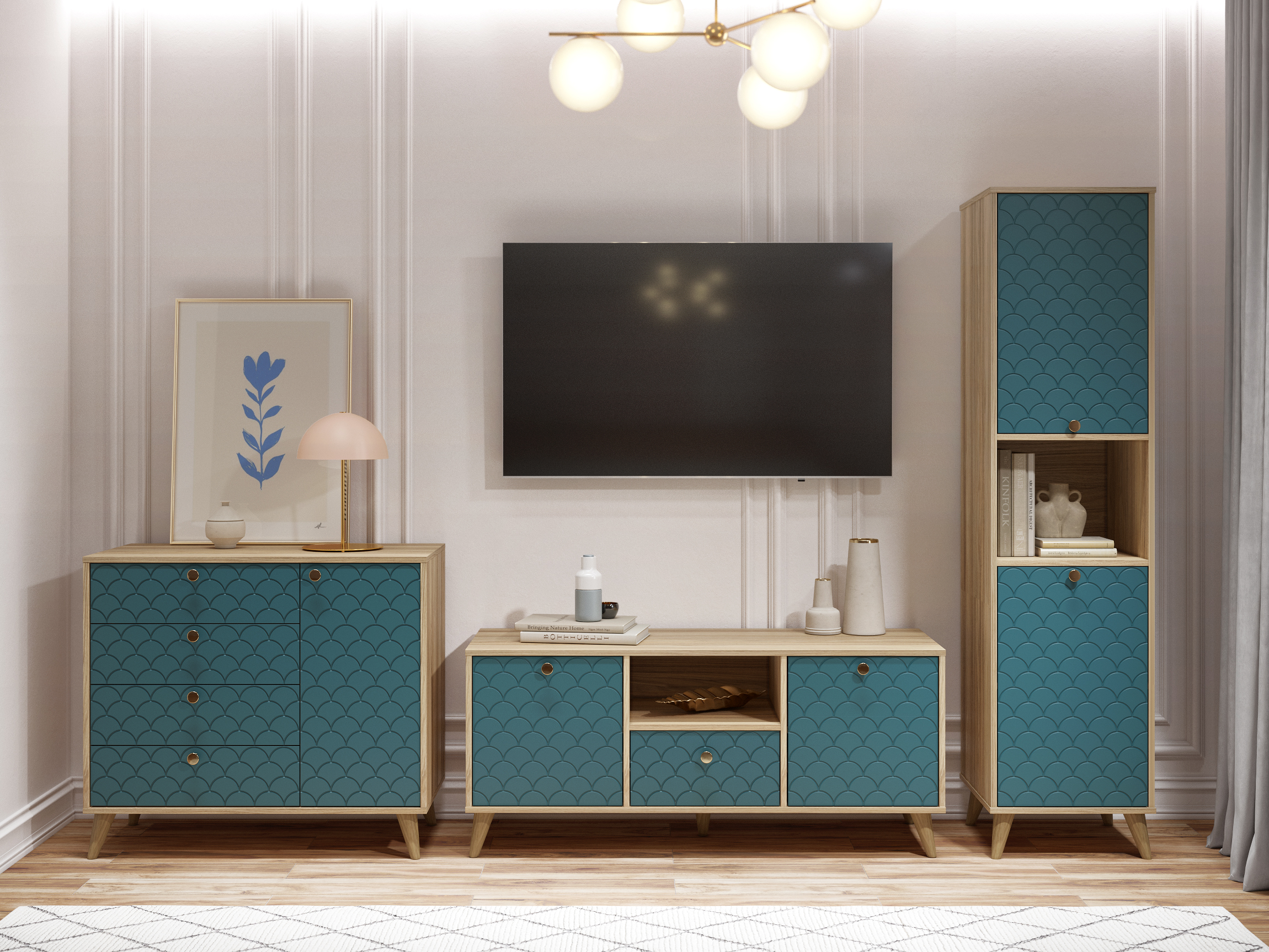 Фурнитура: петли с доводчиками, телескопические направляющие полного выдвижения без доводчиков, ручки металл, деревянные опоры высотой 120 мм.