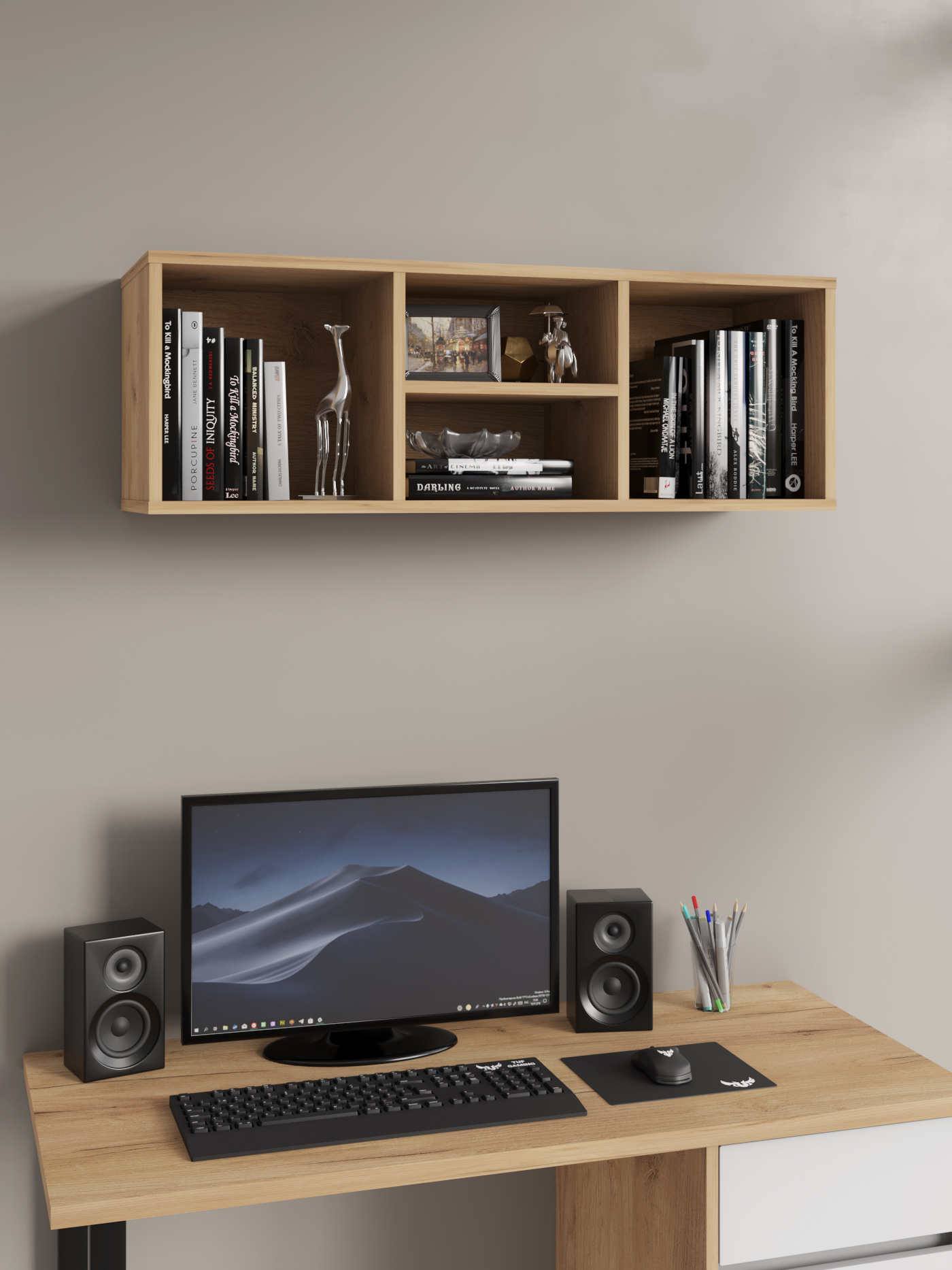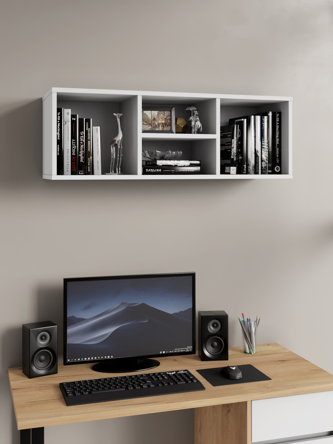 Горизонтальная и вертикальная установка (классический вариант для книг, рамок, ваз; необычное решение для узких стен или креативного зонирования)