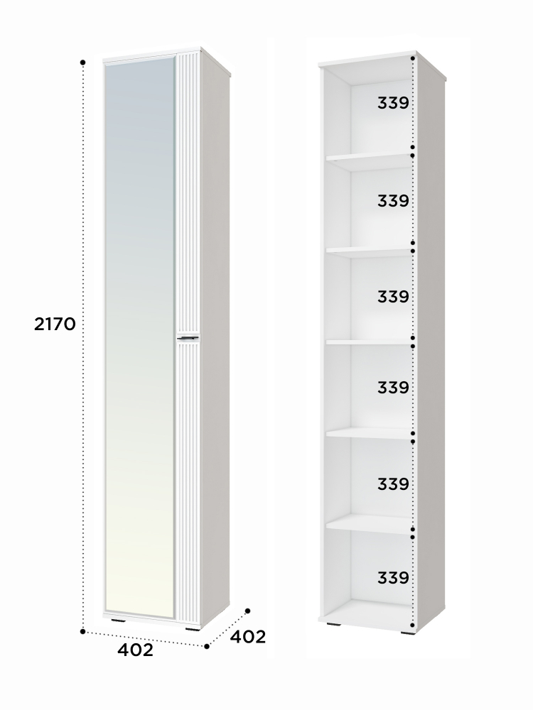 Пенал Эмилия ЭЛ-12К с зеркалом – стильное и функциональное решение для хранения. Этот модуль сочетает в себе элегантный дизайн и практичность, предлагая удобное хранение для самых разных вещей. Внутри пенала расположены удобные полки, подходящие для хранения: одежды и белья (свитеры, джинсы, постельные принадлежности), книг, журналов, фотоальбомов, аксессуаров, косметики, бытовых мелочей.