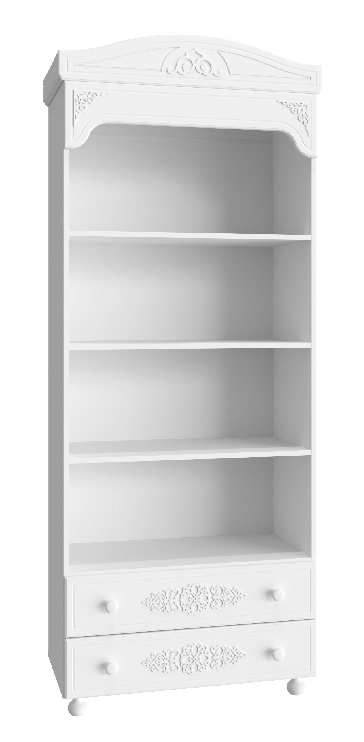 Шкаф-пенал/стеллаж Ассоль АС-3 с четырьмя полками и двумя выдвижными ящиками. Особый шарм придают уникальные объемные фасады на ящиках с 3D накладками. Стеллаж АС-3 не только хорошо впишется в интерьер, но и порадует своей надежностью и функциональностью. Высота опоры 65 мм. Фурнитура: телескопические направляющие полного выдвижения без доводчиков, опоры деревянные, ручки пластик.