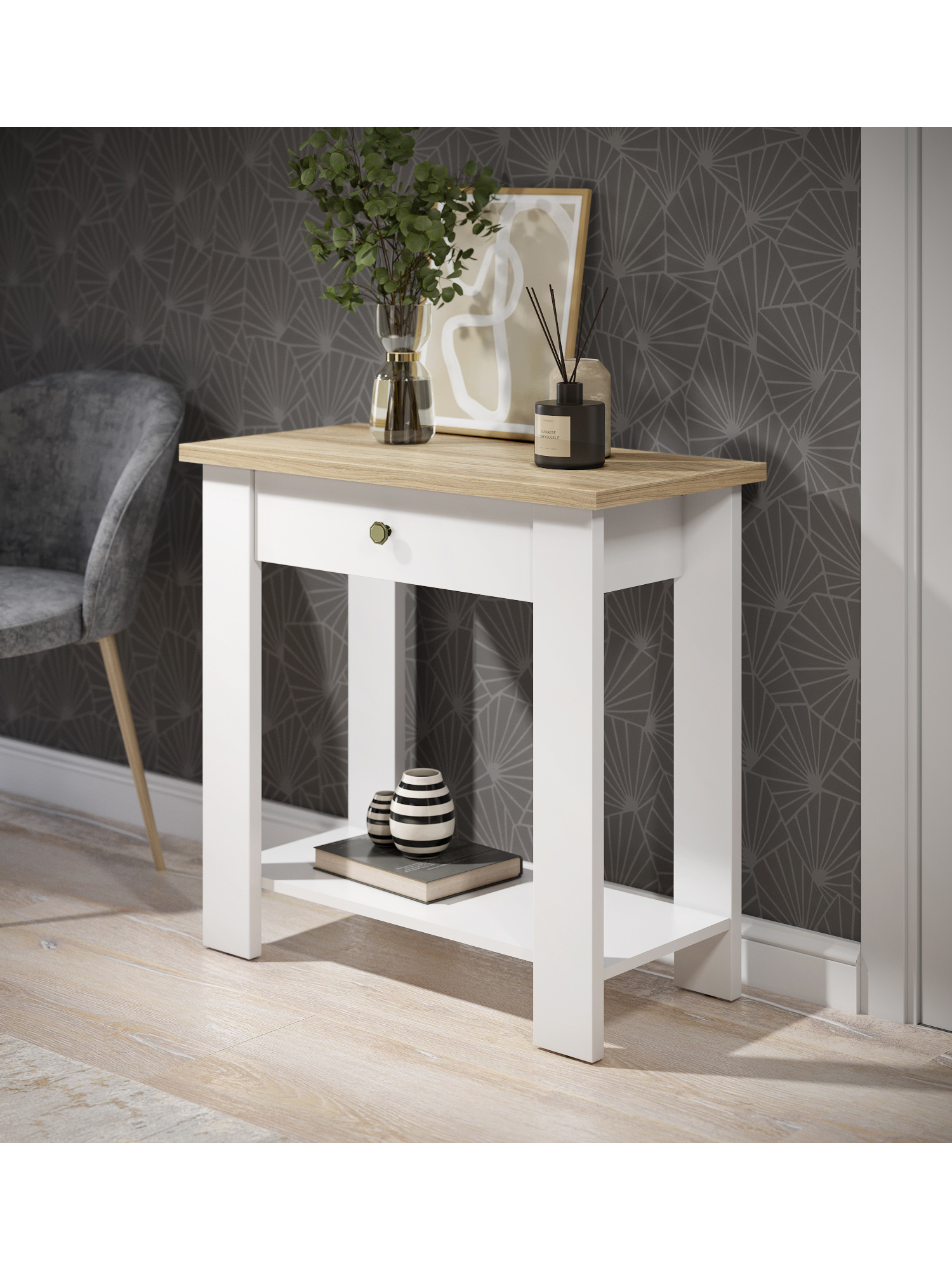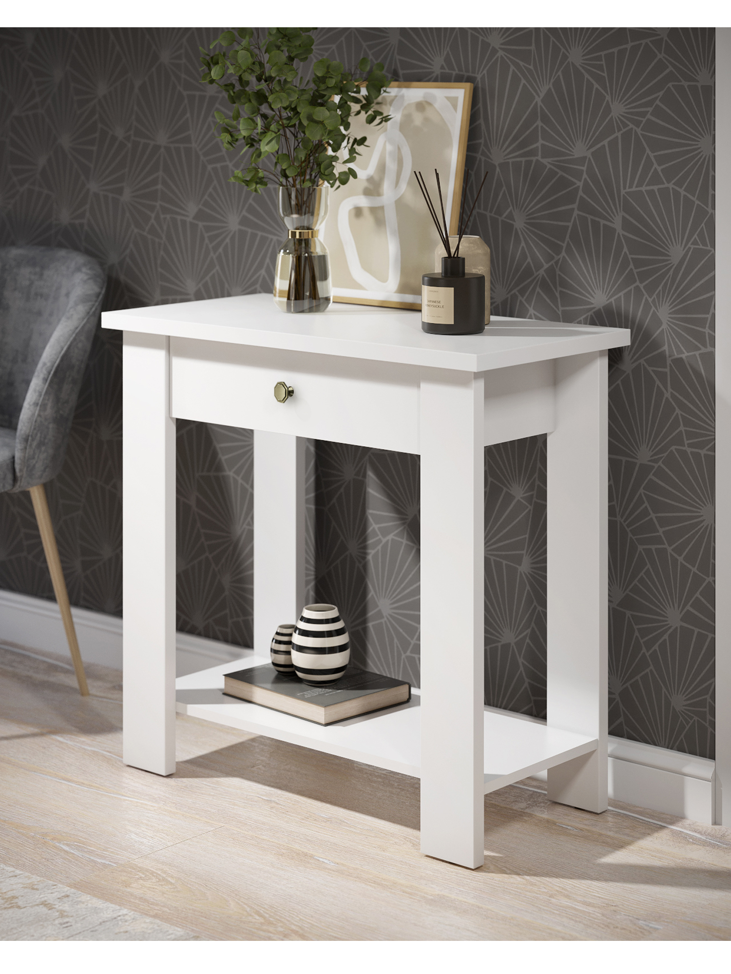 Стол / консоль С-301 универсальный предмет мебели, который может использоваться в различных помещениях: в прихожей и гостиной, на кухне и в ванной, в зале и на балконе. Маленький консольный столик создаст атмосферу комфорта и уюта. Столешница и опоры изготовлены из ЛДСП 25 мм. Дно ящика двп 3 мм. Фурнитура: ручка металл, телескопические направляющие полного выдвижения без доводчиков.