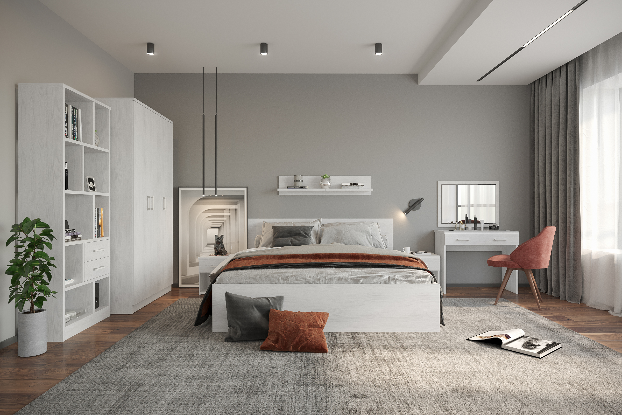 Линейка мебели "Виктория" - выгодное решение для отелей и гостиниц, сбалансированное по цене, качеству и функциональности. В производстве используется ЛДСП, толщины 25/16 мм. Фасады обработаны ударопрочной кромкой ПВХ толщиной 2/0,6 мм. В коллекции используется современная, качественная фурнитура. Базовая комплектация представлена в декоре Дуб крафт золотой и Северное дерево светлое.