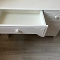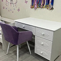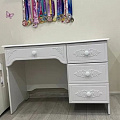 Стол Ассоль АС-6 из изысканной коллекции модульной мебели "Ассоль" может служить как письменным, так и макияжным, если его дополнить АС-38 из одноименной коллекции. Стол снабжен одним большим и тремя стандартными выдвижными ящиками, которые смогут разместить большое количество предметов и аксессуаров. 3D накладки, которые украшают фасады ящиков, уравновешиваются лаконичным дизайном ручек. Столешница изготовлена из МДФ 16мм. Размер центрального ящика: 576х384х110мм, размер боковых ящиков: 310х384х110. Расстояние от центрального ящика до пола 610 мм. Ширина тумбы с ящиками 388 мм. Фурнитура: ручки пластик, телескопические направляющие полного выдвижения без доводчиков.
