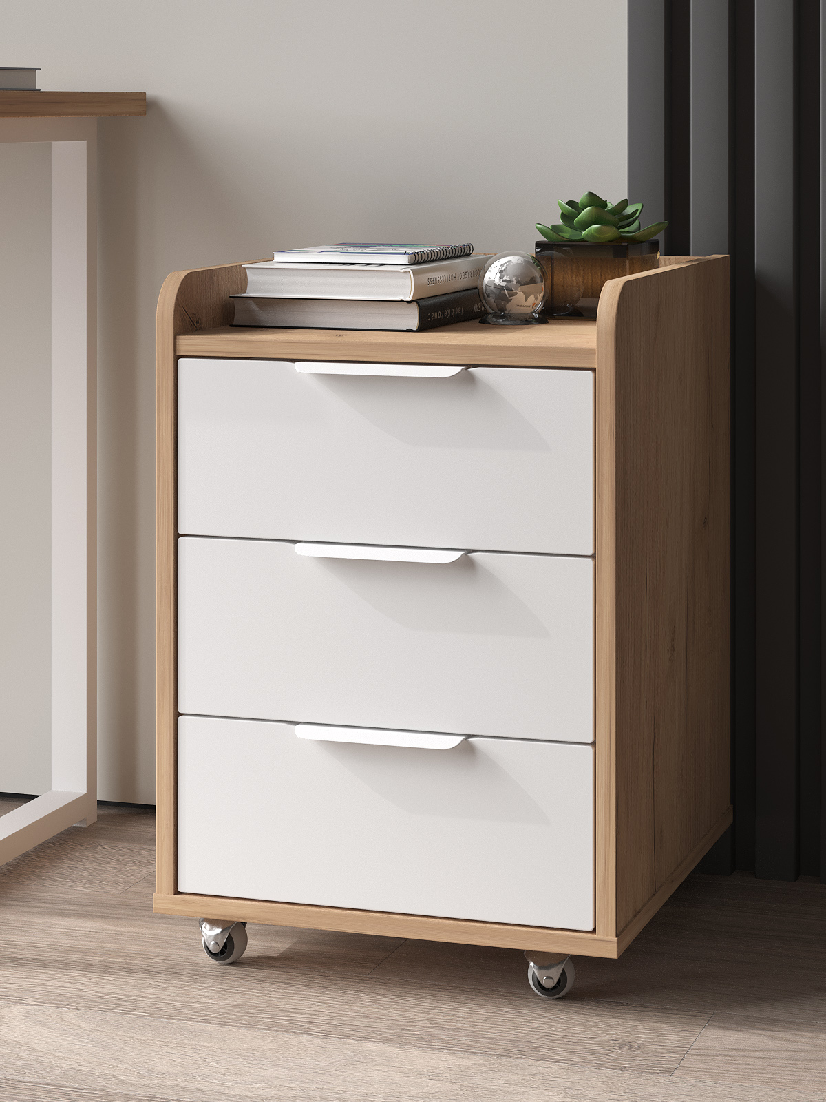 Тумба мобильная К-57 подойдет для бизнеса, для рабочего места. Тумба оснащена 3-мя выдвижными ящиками для различных мелочей.