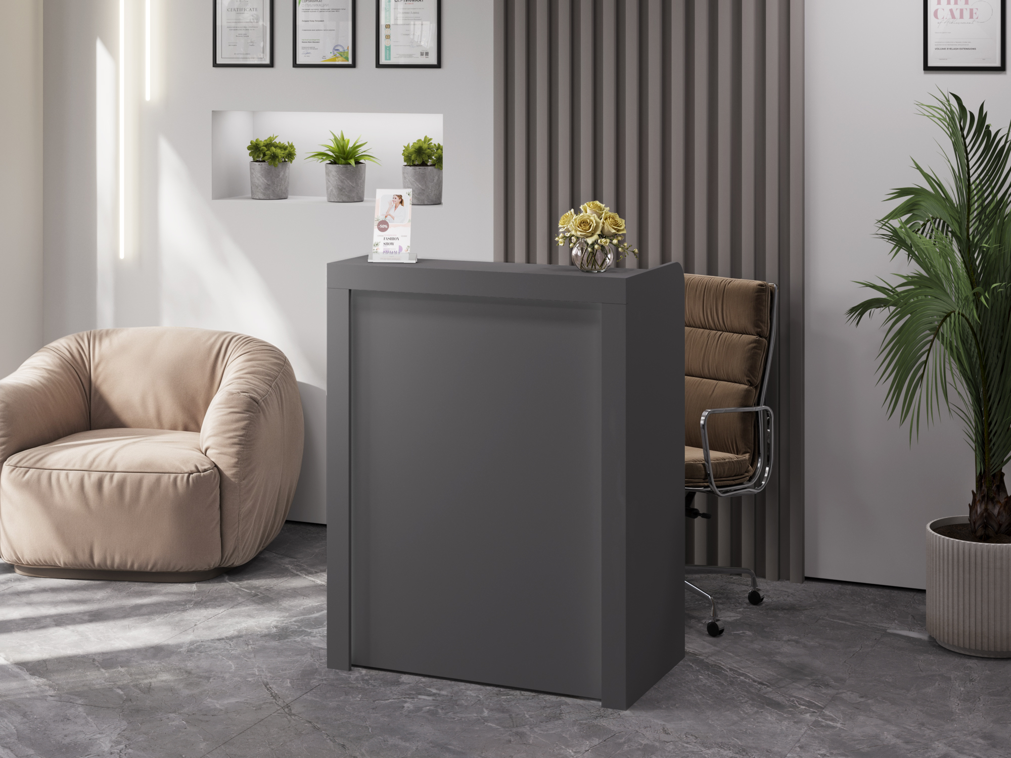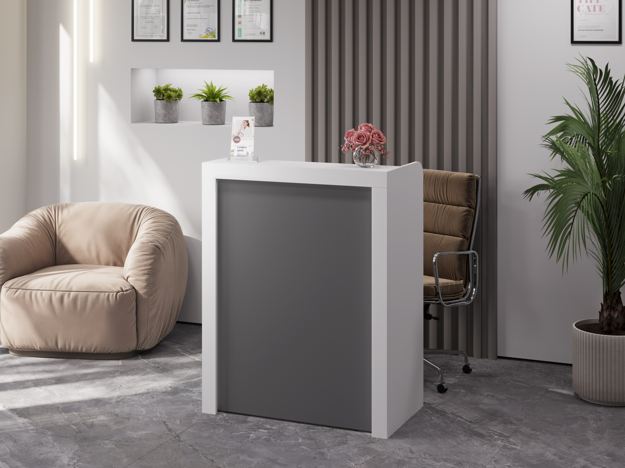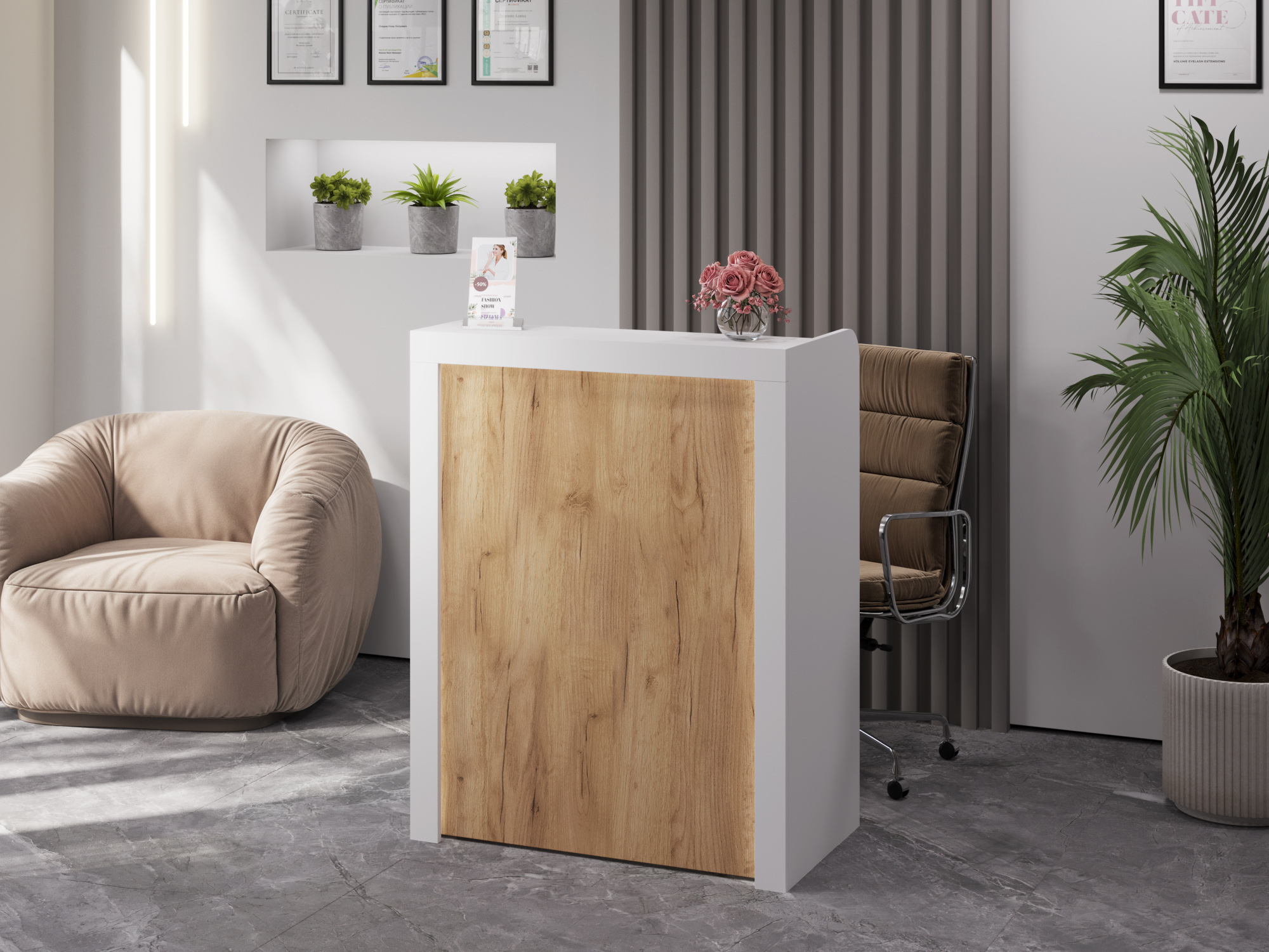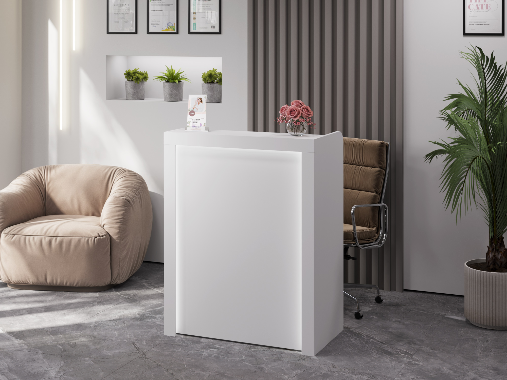 Тумба/ресепшн/стойка администратора/кассовый стол Р-01 стильная, отлично подойдет для салона красоты или кабинета.