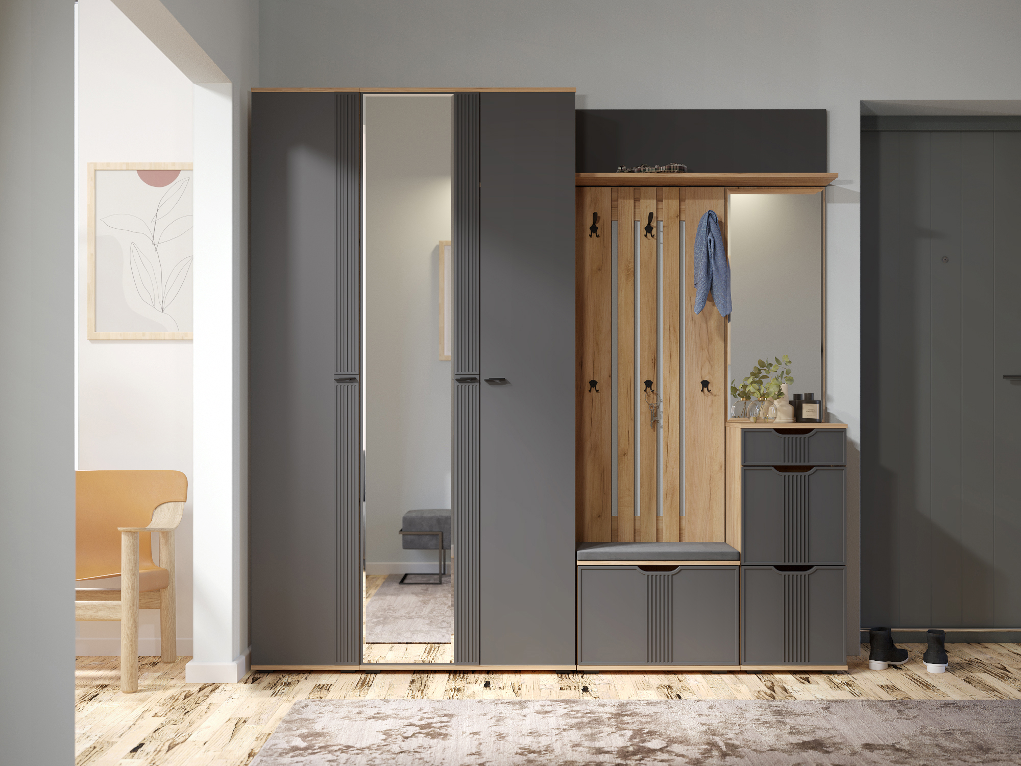 Фурнитура: петли с доводчиками, телескопические направляющие полного выдвижения без доводчиков, крючки и ручки металл. Свес крышки в 30 мм обеспечит прилегание к стене с любым плинтусом. Важная информация. Мебель доставляется в разобранном виде, в упаковках.