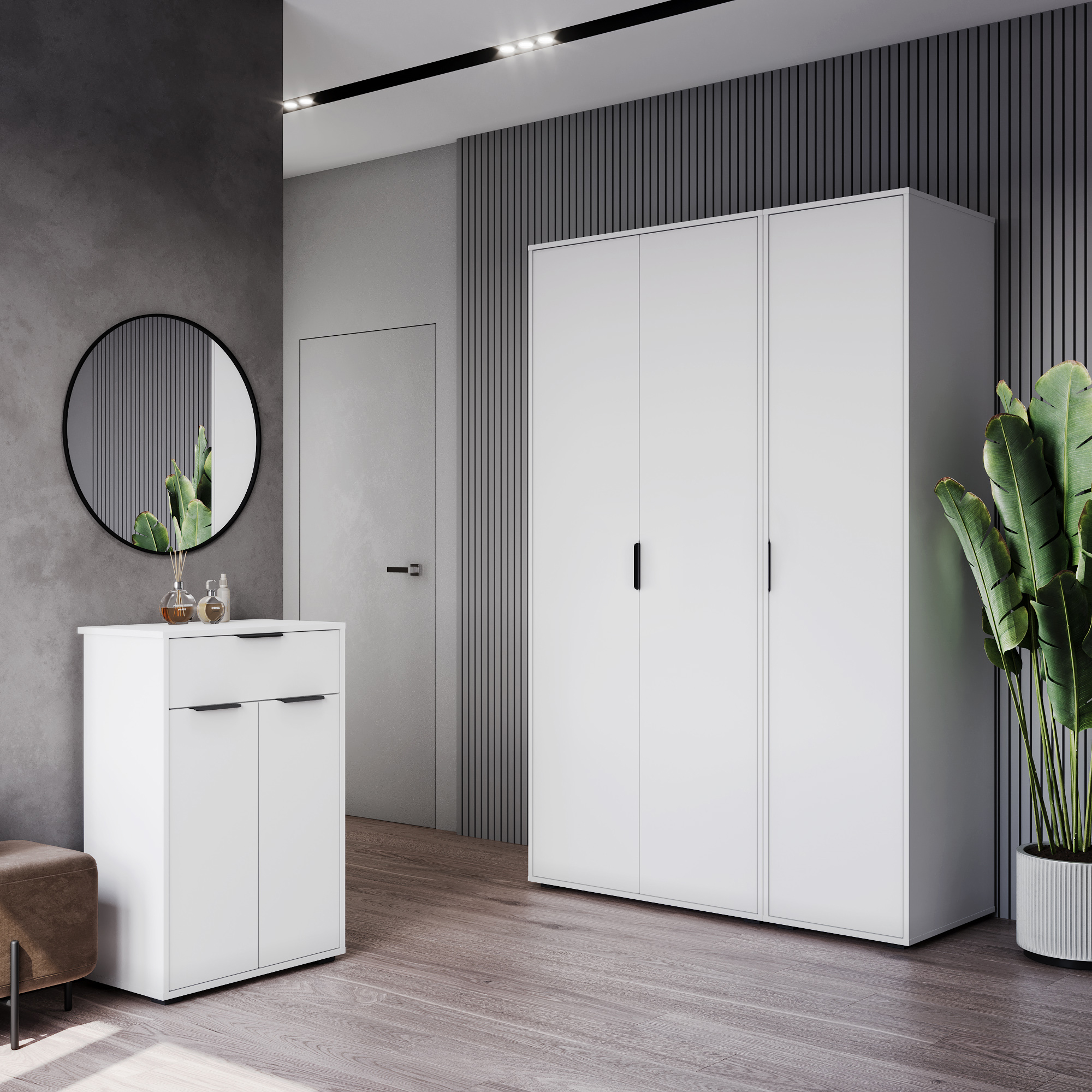 Комплект мебели для прихожей Оптима ОП-105 белый структурный/меренга