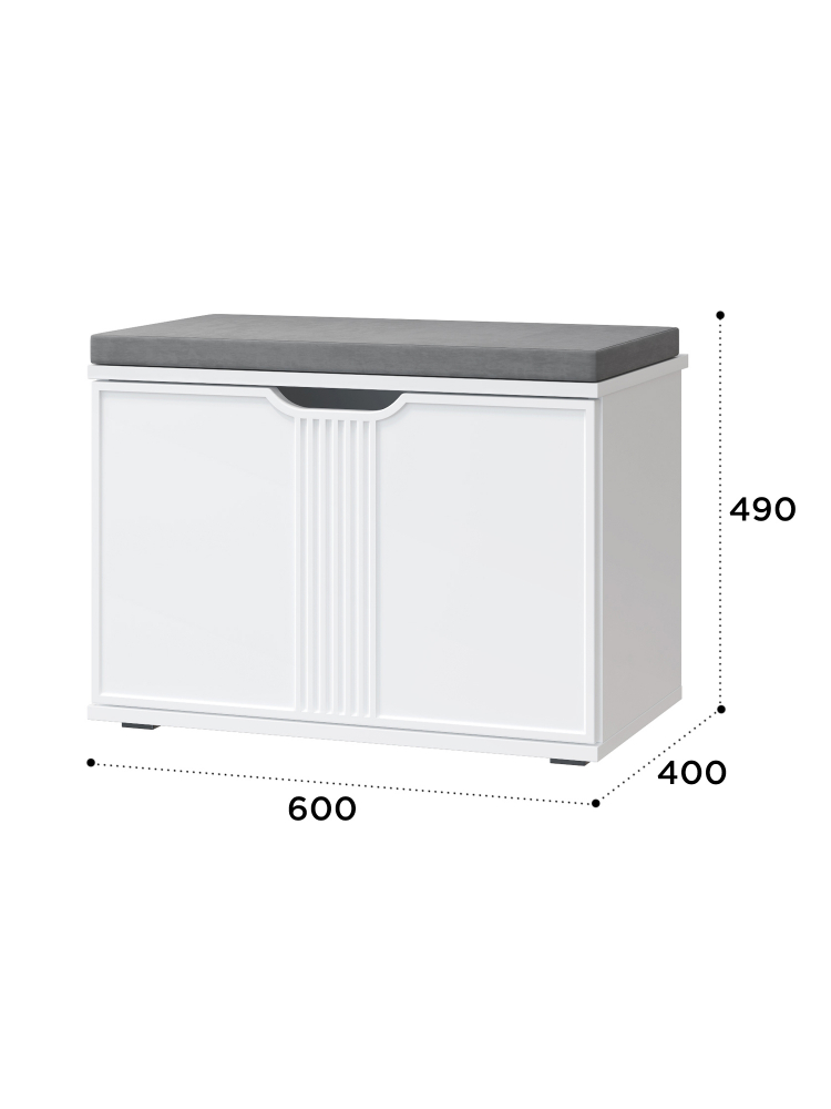 Тумба Эмилия ЭЛ-4K (с подушкой) прекрасно подойдет для хранения обуви и других вещей. Сочетая тумбу с другими модулями из коллекции Эмилия, Вы можете создать стильную и лаконичную прихожую у себя дома. Свес крышки в 30 мм обеспечит прилегание к стене с любым плинтусом. Высота опоры 20 мм. Размер подушки 600х368 мм. Ткань мягкой части велюр, наполнение: поролон 40 мм, синтепон, белый флизелин.