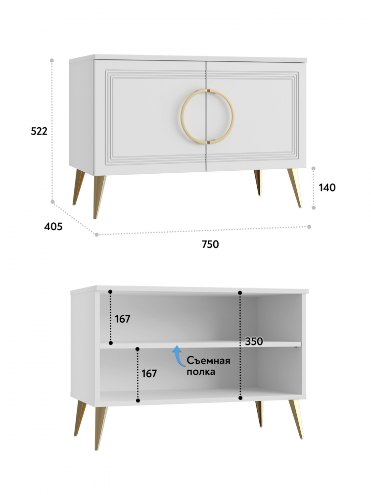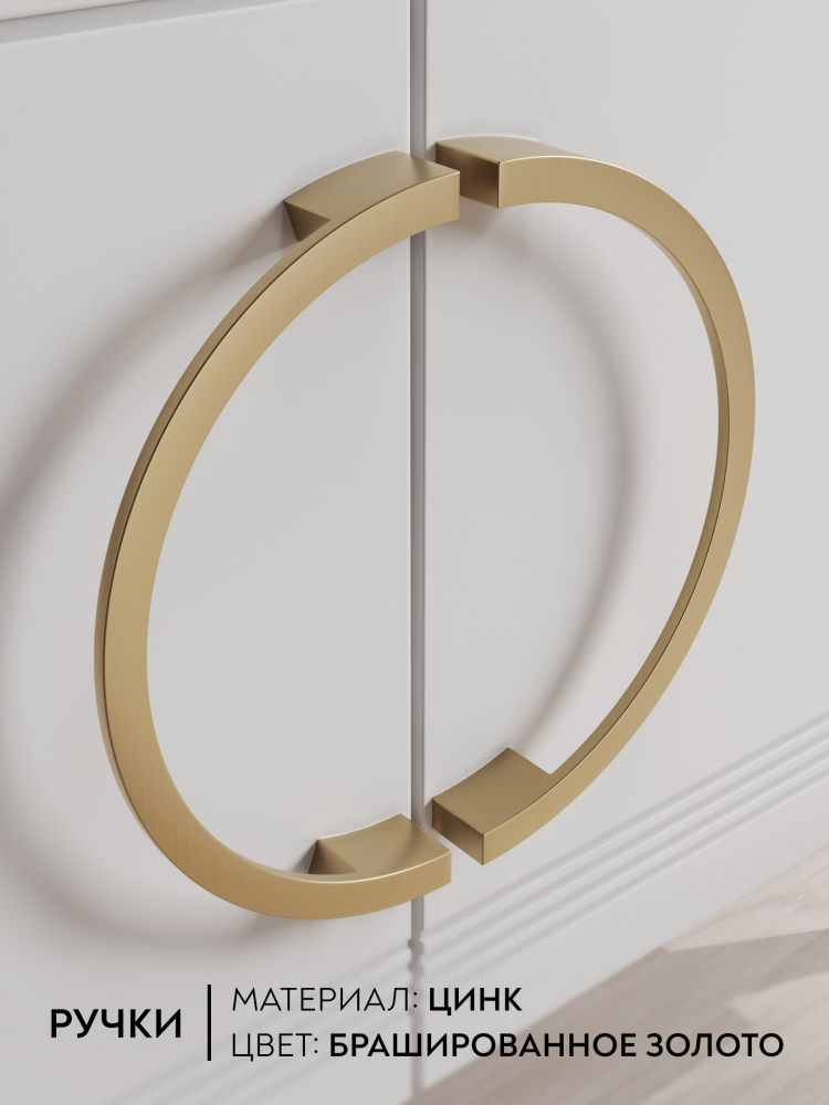- Металлические фигурные ручки в цвете брашированное золото, блеск приглушенный.