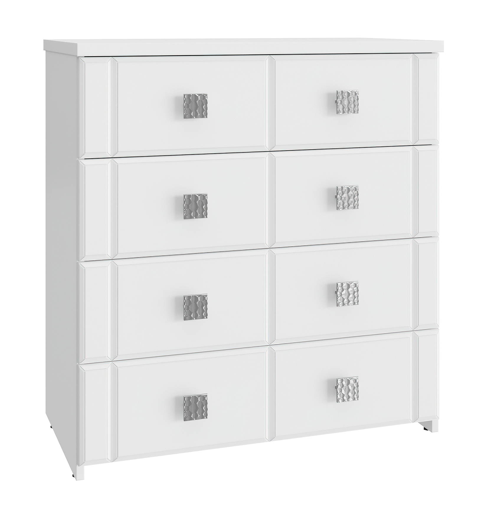 Комод Изабель ИЗ-50К станет прекрасным дополнением вашей гостиной или комнаты, состоит из четырех выдвижных ящиков. Столешница выполнена из ЛДСП 25 мм, дно ящика двп 3 мм. Внутренние размеры ящика: ш706 х г334 х в110 мм. Фурнитура: металлизированные квадратные ручки, телескопические направляющие полного выдвижения.