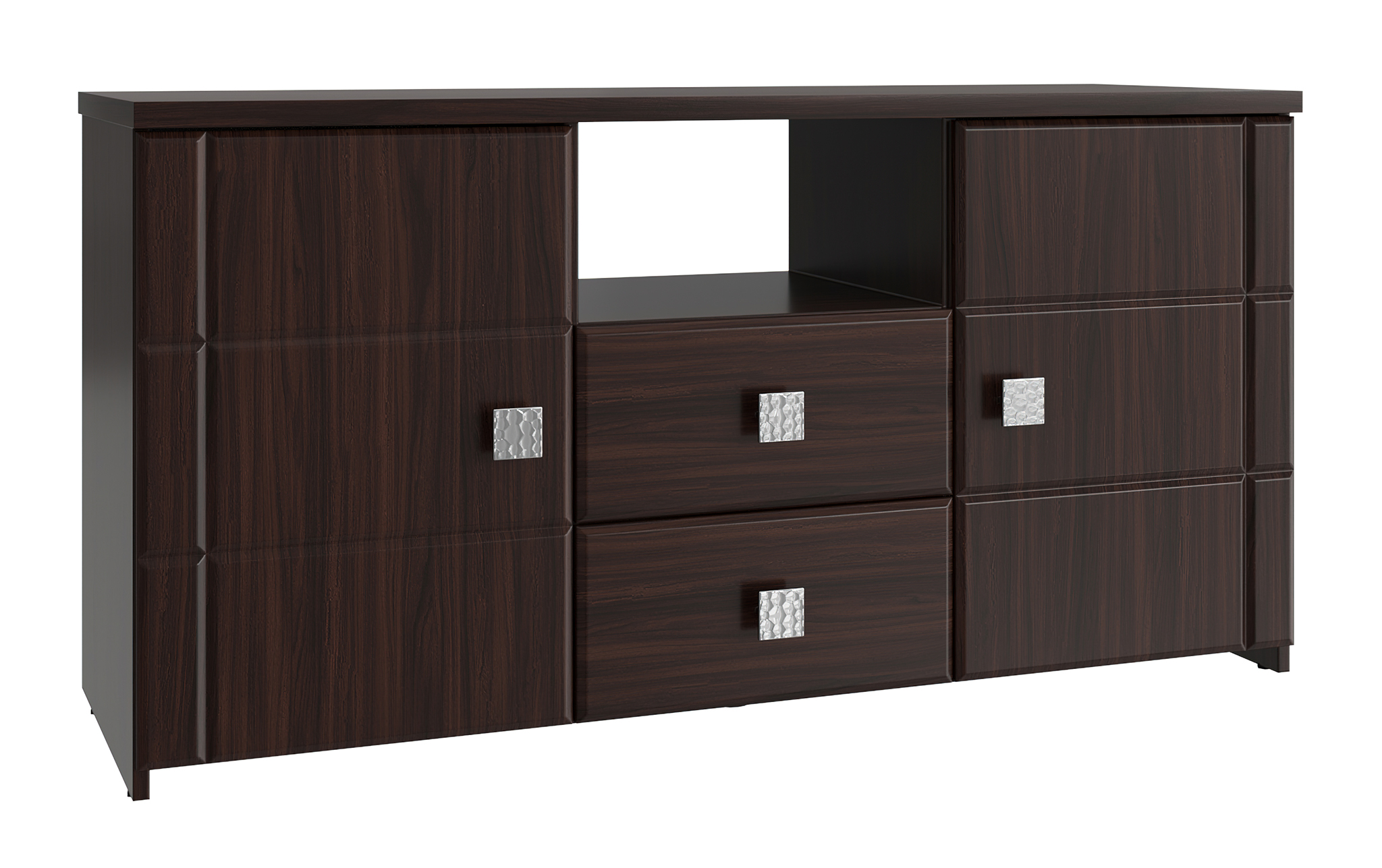 Тумба Изабель ИЗ-53К для ценителей современного дизайна. Наполнение тумбы: два выдвижных ящика, ниша для аппаратуры или книг и два закрытых отделения с полками. Столешница выполнена из ЛДСП 25 мм, дно ящика двп 3 мм. Фурнитура: металлизированные квадратные ручки, телескопические направляющие полного выдвижения, петли с доводчиками.