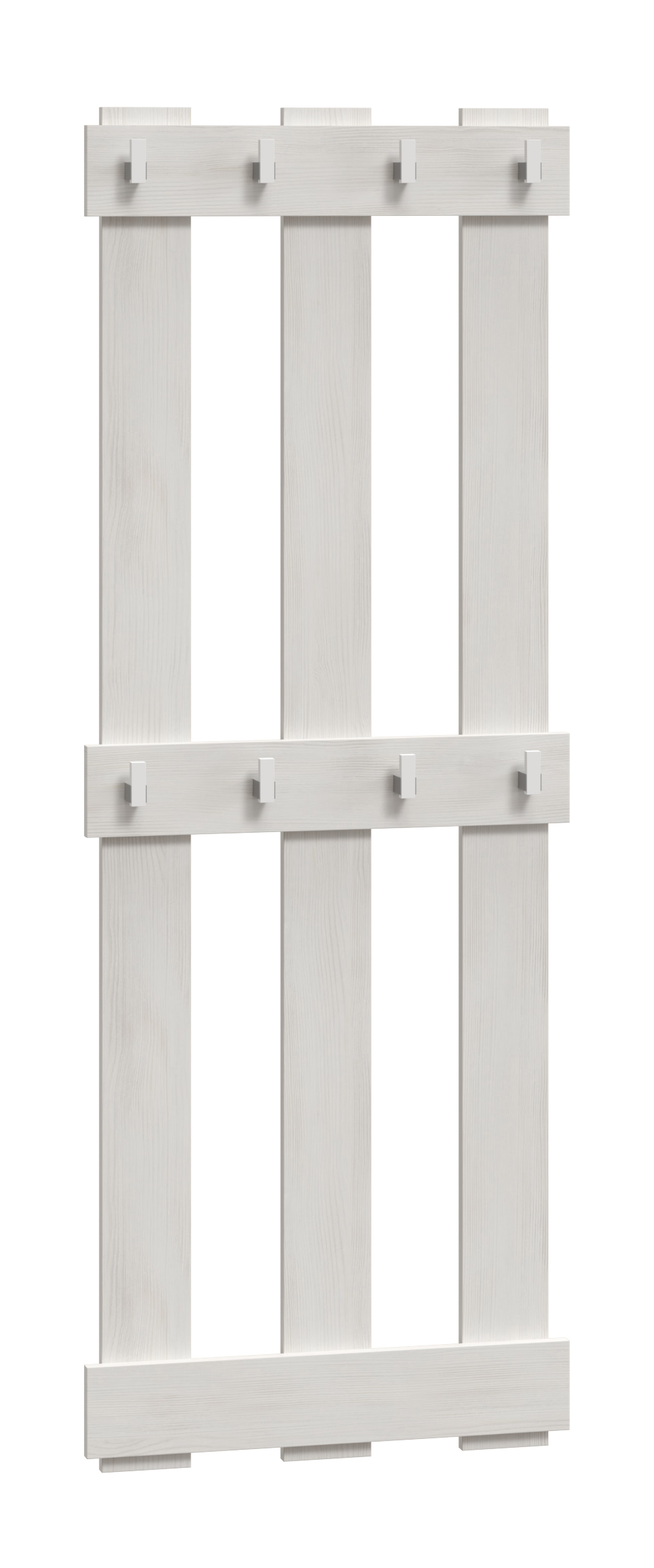 Вешалка настенная Агата АТ-11 станет прекрасным дополнением уютного интерьера вашей прихожей. Вешалка идеально впишется в самый маленький уголок. Восемь крючков предназначены для размещения верхней одежды, зонтов и других аксессуаров. Фурнитура: крючки пластик.