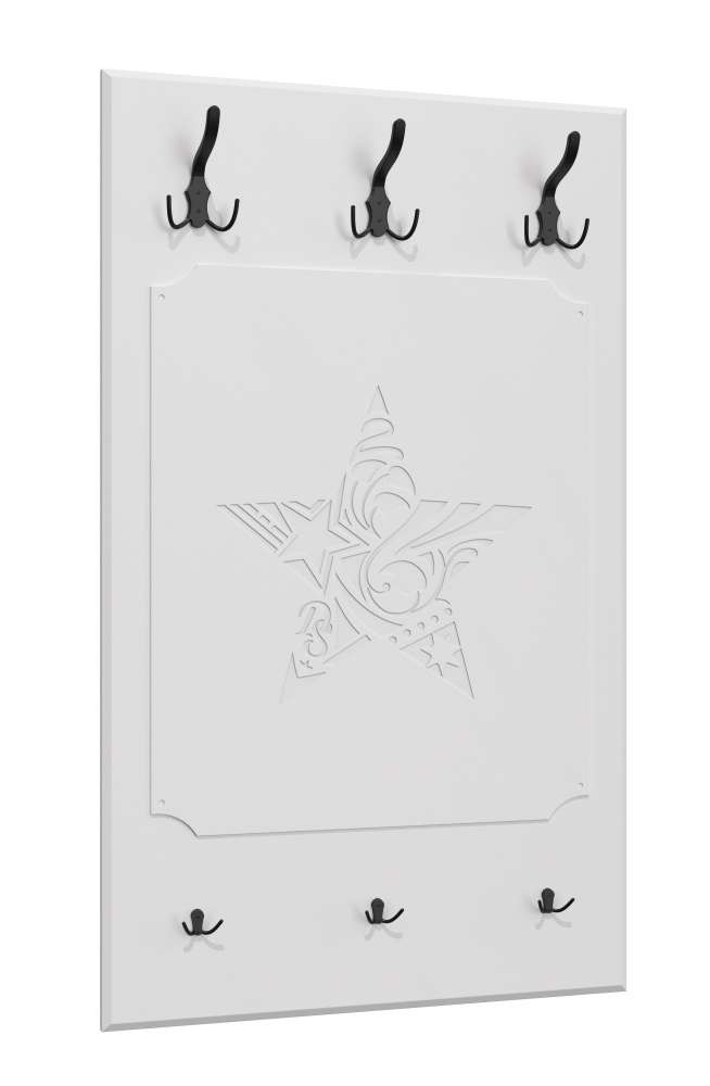 Настенная вешалка ДримСтар ДС-31 компактная и функциональная, изготовлена из МДФ, включает в себя шесть крепких крючков черного цвета для верхней одежды и аксессуаров. Вешалка прекрасно будет смотрется в комплекте с зеркалом ДС-41 и тумбой под обувь ДС-16.