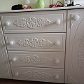 Комод АС-19 из коллекции мебели Ассоль, несомненно, станет украшением Вашей гостиной или спальни. Комод оборудован посередине четырьмя вместительными выдвижными ящиками для белья и постельных аксессуаров. По бокам находятся тумбы с дверцами, за которыми по три полки. Комод установлен на ножки. Выдвижные ящики оснащены современными телескопическими направляющими, обеспечивающие плавное и бесшумное выдвижение ящиков, а на дверцах установлены петли с доводчиками. Вы можете создать самостоятельно замечательный мебельный комплект, дополнив комод зеркалом АС-38. В оформлении фасадов МДФ применяется уникальная технология нанесения объемного узора 3D. Высота опоры 65 мм. Фурнитура: петли с доводчиками, телескопические направляющие полного выдвижения без доводчиков, ручки пластик, деревянные опоры. Важная информация. Мебель доставляется в разобранном виде, в упаковках.