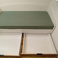 Кровать односпальная / софа Скайлайт СЛ-31К идеальна для детской и подростковой комнаты. Спинки кровати имеют плавные линии без острых углов, что особенно актуально для активных детей. Кровать имеет два выкатных ящика глубиной 766 мм для хранения вещей, игрушек или постельного белья. Кровать оснащена защитным бортиком (320х900 мм), который может крепиться к любой боковой стенке. Рекомендуемый размер матраса: 900*2000*160-200 мм. Основание кровати: ЛДСП 16 мм. Дно ящиков двп 3 мм. Фурнитура: ручки металл. Матрас в комплект не входит и приобретается дополнительно.