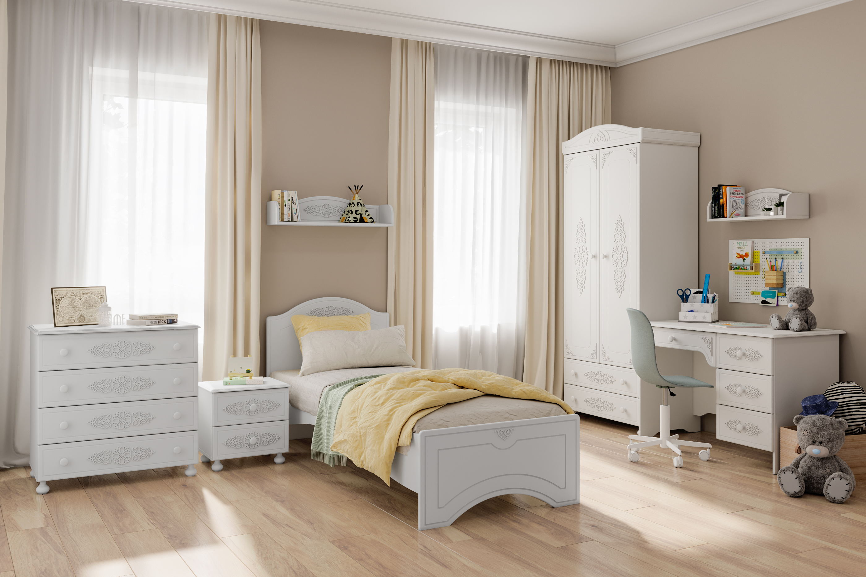 «Ассоль» выпускается только в одном цвете «белое дерево». Для нее характерен мягкий мерцающий глянец и эксклюзивный узор, повторяющийся на фасадах всех моделей. В линейку входит более 50 модулей, отлично сочетающихся друг с другом и позволяющих создавать индивидуальный интерьер.