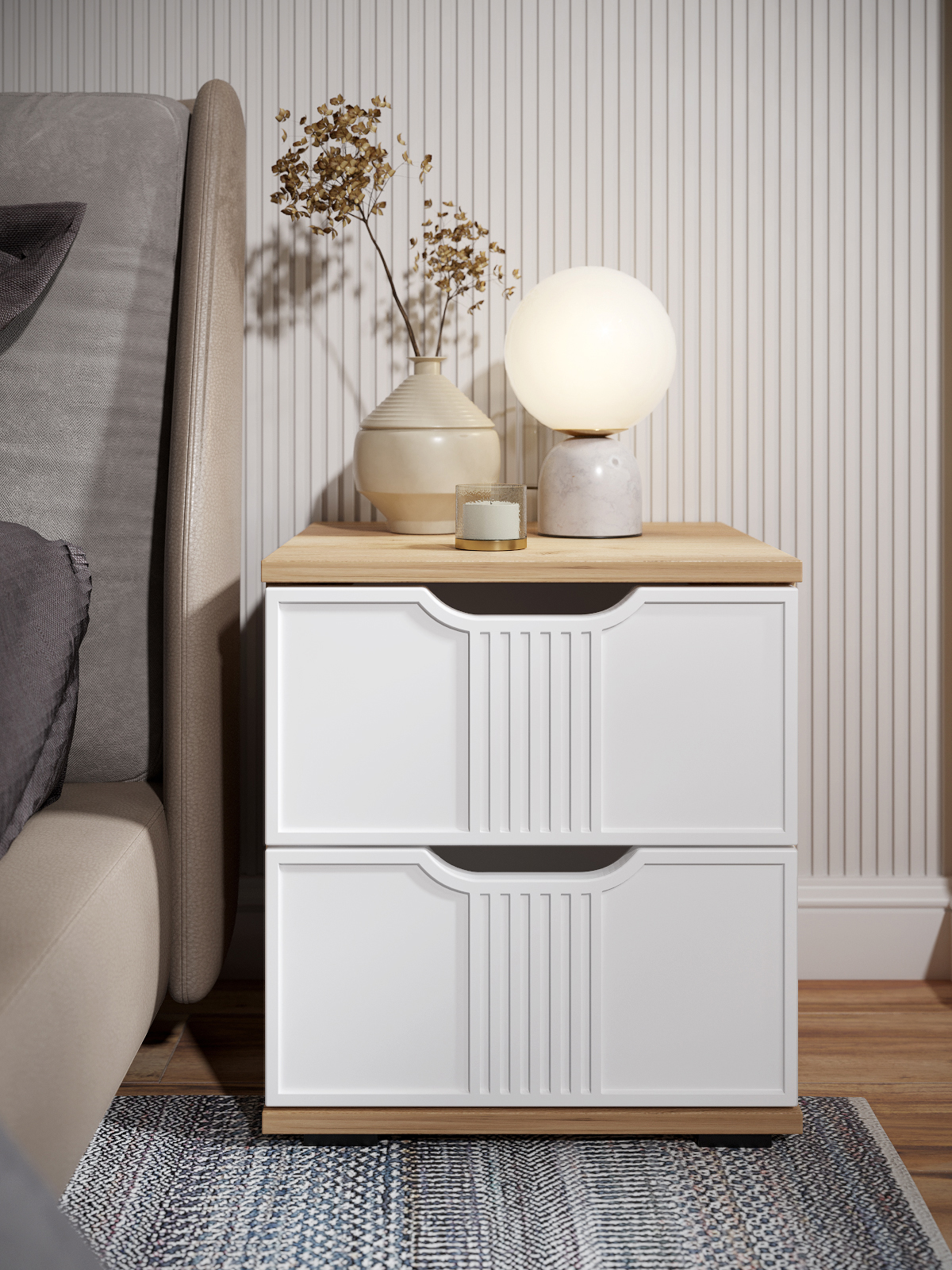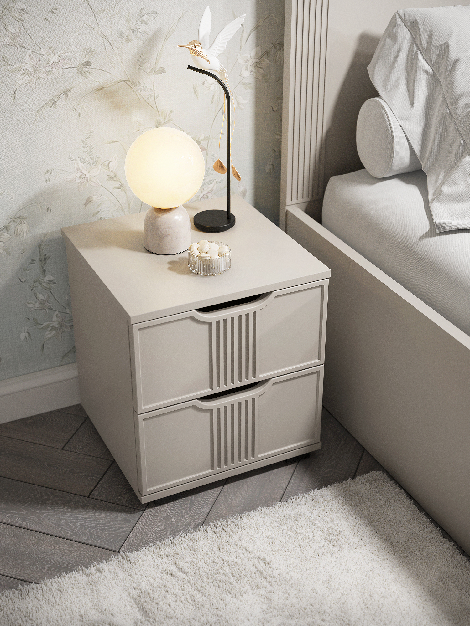 Тумба прикроватная Эмилия ЭЛ-25 станет прекрасным дополнением современной спальни. Тумба изготовлена из ЛДСП 16 мм, фасады МДФ. Свес крышки в 30 мм обеспечит прилегание к стене с любым плинтусом. Внутренние размеры ящика ш304 х г284 х в110 мм. Дно ящика двп 3 мм. Высота опоры 20 мм. Фурнитура: телескопические направляющие полного выдвижения без доводчиков, регулируемые опоры.