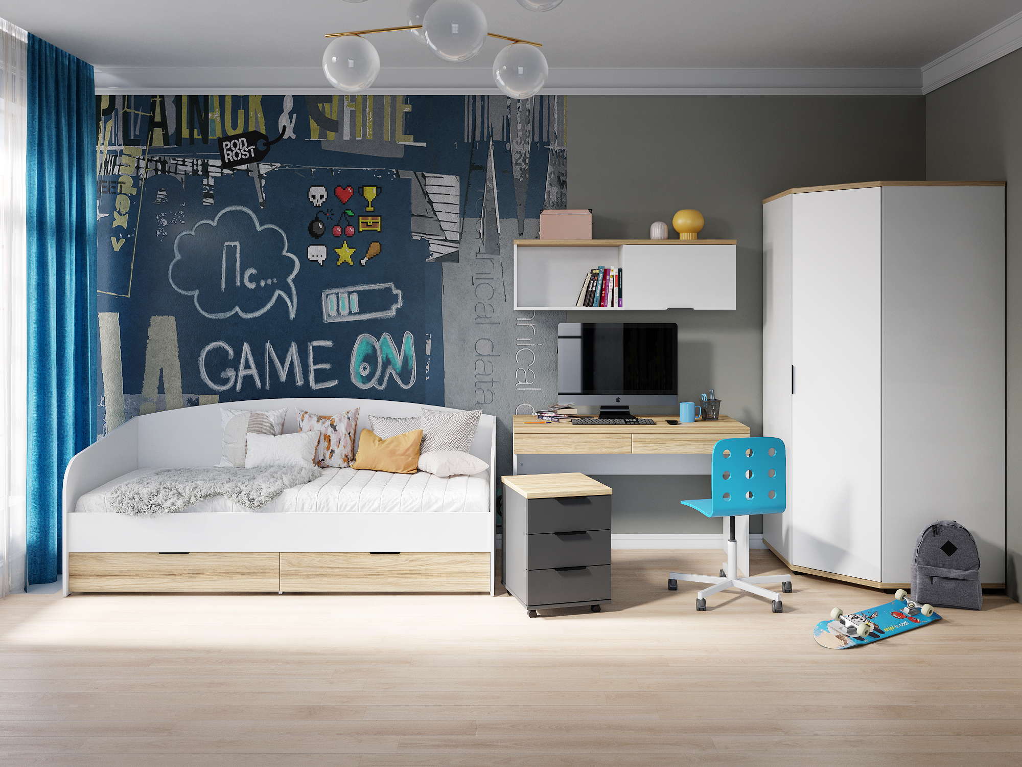 Цвет корпуса/фасада: блэквуд ячменный/графит/белый/меренга Материал корпуса/фасада: ЛДСП, МДФ В комплект данного гарнитура входит: Кровать Скайлайт СЛ-31К блэквуд ячменный/белый / 1 шт Стол письменный Скайлайт СЛ-20К блэквуд ячменный/белый / 1 шт Шкаф угловой Скайлайт СЛ-1К блэквуд ячменный/белый/меренга / 1 шт Тумба Скайлайт СЛ-12К блэквуд ячменный/графит / 1 шт Полка Скайлайт СЛ-41К блэквуд ячменный/белый/меренга / 1 шт Обратите внимание! Матрас в комплект не входит и приобретается дополнительно. Мебель доставляется в разобранном виде,