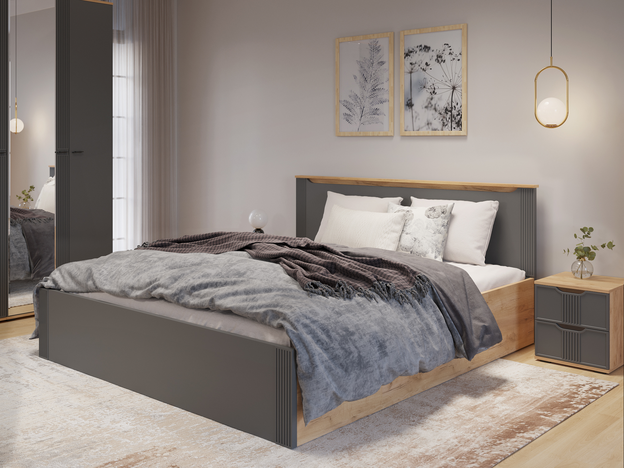 • Кровать с ПМ Эмилия ЭЛ-35 (1800х2000) дуб крафт золотой/графит / 1 шт