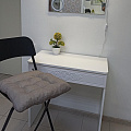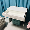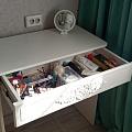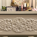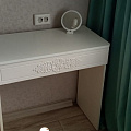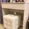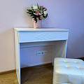 Туалетный столик ТС-15 - неотъемлемая часть спальни или женской комнаты. Каждая девочка, девушка или дама хочет иметь собственное пространство, свой уголок красоты, для того чтобы привести себя в порядок, нанести макияж, удобно и компактно расставить свою косметику и парфюмерию, аккуратно сложить украшения и аксессуары. Столик имеет один выдвижной ящик на телескопических направляющих без доводчиков. В оформлении фасадов МДФ применяется уникальная технология нанесения объемного узора 3D.