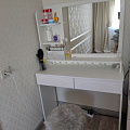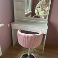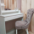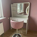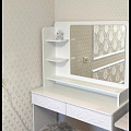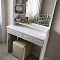 Туалетный столик ТСН-2 - неотъемлемая часть спальни или женской комнаты. Каждая девочка, девушка или дама хочет иметь собственное пространство, свой уголок красоты, для того чтобы привести себя в порядок, нанести макияж, удобно и компактно расставить свою косметику и парфюмерию, аккуратно сложить украшения и аксессуары. Столик имеет два выдвижных ящика на телескопических направляющих без доводчиков и зеркало с тремя полками. Размеры зеркала (ш/в) в мм: 630x550 мм. В оформлении фасадов МДФ применяется уникальная технология нанесения объемного узора (3D). Фурнитура: телескопические направляющие полного выдвижения без доводчиков.