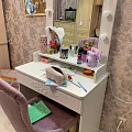 Туалетный столик ТСН-4 – неотъемлемая часть спальни или женской комнаты. Столик не занимая много места, остается вместительным и функциональным, позволяет компактно расставить косметику и парфюмерию, аккуратно сложить украшения и аксессуары. В ящике стола установлены телескопические направляющие полного выдвижения, обеспечивающие его плавный ход. Зеркало оснащено лампами с трех сторон, свет распределяется равномерно, что идеально для ухода за лицом и нанесения макияжа. Зеркало работает от сети, вся электрическая часть с проводкой смонтирована и закрыта задней стенкой. Рекомендуется выбирать светодиодные лампочки с цоколем Е14, мощностью 3-5 Вт и цветовой температурой 4000-4200K (нейтральный белый свет) или 6200K (дневной свет). Фурнитура: телескопические направляющие полного выдвижения без доводчиков. В зеркале присутствует провод (2м) с вилкой, на проводе есть тумблер вкл/выкл.